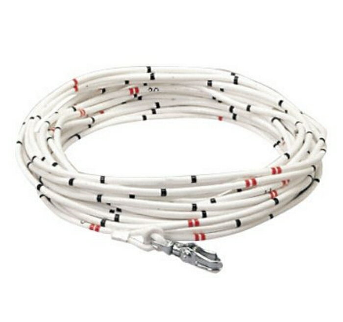 【特長】 ・本体素材:グラスファイバー製 ・ナスカン付 ・おもりは別売り 【仕様】 ・ロープ長:200m ・目盛:10cm間隔目盛 ・ロープ径:5φ
