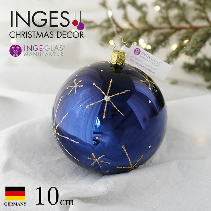 21232T010 ドイツINGE-GLAS MANUFAKTUR(インゲ・グラス)[J175]スター柄ミッドナイトネイビー 10cm ガラスボール ハンドメイドオーナメント Made in Germany 職人の手作り ヨーロッパ直輸入 クリスマス ピカキュウホーム ピカキュウhome