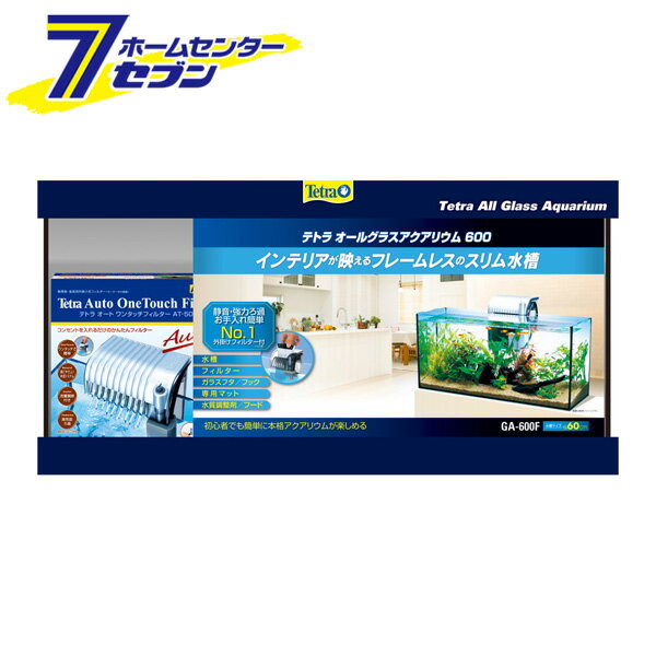 【商品解説】インテリアに映える美しいフレームレスのオールガラスのスリム水槽。お手入れ簡単、静かな運転音のワンタッチフィルター付。初心者でもお洒落に簡単に観賞魚の飼育が始められる。【スペック】●型式:(テトラオ−ルグラスアクアリウム600)●JANコード:4571269552198サイズ(幅×奥行×高さ):幅60.5×奥行21.0×高さ30.0cm水量:約35Lガラス厚:5mm重量:9169g付属品:専用ガラスフタ、水質調整剤、オートワンタッチフィルターAT-50この商品は宅配便でお届けする商品です出荷可能日から最短日時でお届けします。※出荷完了次第メールをお送りします。配送サービス提供エリアを調べることができます「エリア検索」をクリックして、表示された画面にお届け先の郵便番号7桁を入力してください。ご購入可能エリア検索お買い上げ合計3,980円以上で送料無料となります。※3,980円未満の場合は、一律550円(税込)となります。●出荷可能日から最短日時でお届けします。(日時指定は出来ません。) ※お届け時に不在だった場合は、「ご不在連絡票」が投函されます。 「ご不在連絡票」に記載された宅配業者の連絡先へ、再配達のご依頼をお願いいたします。●お届けは玄関先までとなります。●宅配便でお届けする商品をご購入の場合、不用品リサイクル回収はお受けしておりません。●全て揃い次第の出荷となりますので、2種類以上、または2個以上でのご注文の場合、出荷が遅れる場合があります。詳細はこちら■商品のお届けについて商品の到着日については、出荷完了メール内のリンク(宅配業者お荷物お問い合わせサービス)にてご確認ください。詳しいお届け目安を確認する1度の注文で複数の配送先にお届けすることは出来ません。※注文時に「複数の送付先に送る」で2箇所以上への配送先を設定した場合、すべてキャンセルとさせていただきます。
