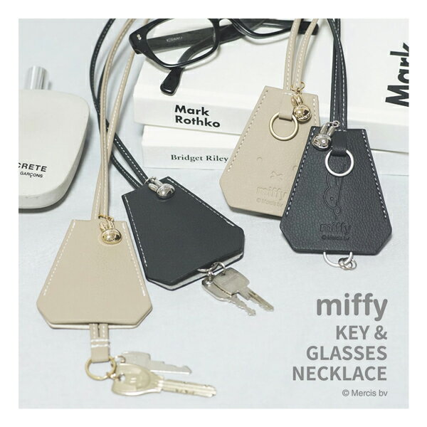 miffy key&glass necklace ミッフィー キー&グラスネックレス おしゃれで実用的な首から下げるアクセサリー感覚のキーケース。 首紐の先にキーリングが2個ついているのでそこに鍵を付けられます。 本体背面にはミッフィーの型押しが入っており、メガネを引っかけられるリングが付いています。 上着不要で軽装になるこれからの季節にコーディネートのアクセントとしても大活躍です! <3つのポイント> キーケースとして、グラスホルダーとして。さっと取り出せて忘れない、なくさない。 コーディネートのワンポイントに。首から下げてネックレスとして、バッグにつけてチャームにも。 さりげなく見え隠れするミッフィー。主張しすぎないユニセックスデザイン。 GE:本体グレージュ フェイス柄 チャームはゴールド BK:本体ブラック ミッフィーひょっこり柄 チャームはシルバー サイズ:(本体)H85×W75×首紐460(920)mm、28g (箱)H112×W110×D30mm 包装 :不織布袋+貼り箱 材質 :PVC、ポリエステル、鉄、亜鉛合金 特徴 :首から下げるアクセサリー感覚キーケース :普段はネックレス、バッグにつけてチャームにも :どんな服装にもあわせやすいシンプルデザイン 品番 :EB423GE、EB423BK