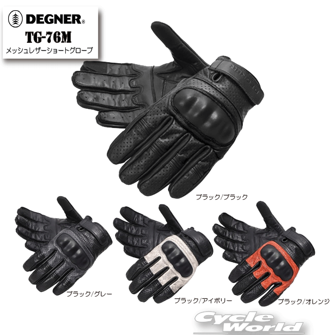 ☆正規品【DEGNER】TG-76M メッシュレザーショートグローブ GLOVE 牛革 レザー スマホ対応 デグナー 【バイク用品】