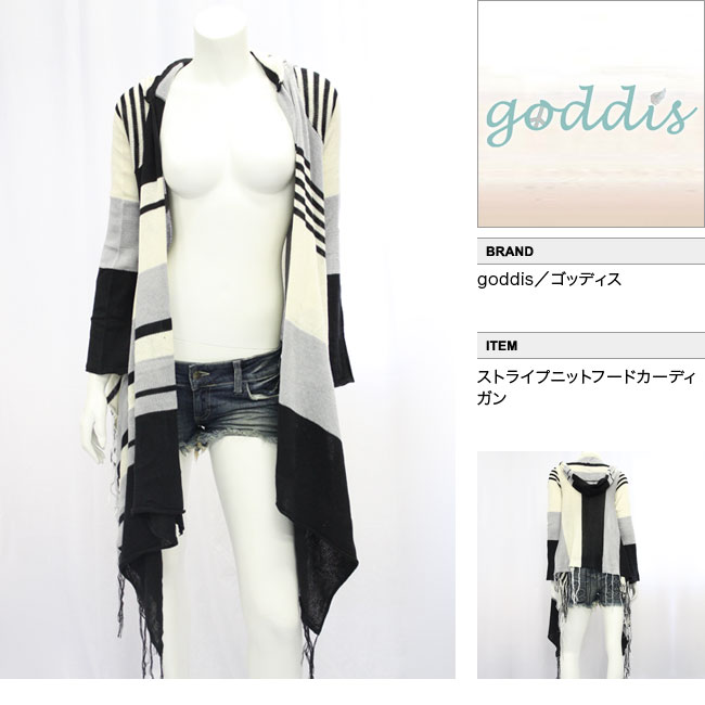 【goddis/ゴッディス】ストライプニットフードカーディガン(ホワイト×ブラック・WHT×BLK)/レディース【インポート】【セレカジ】【正規品】