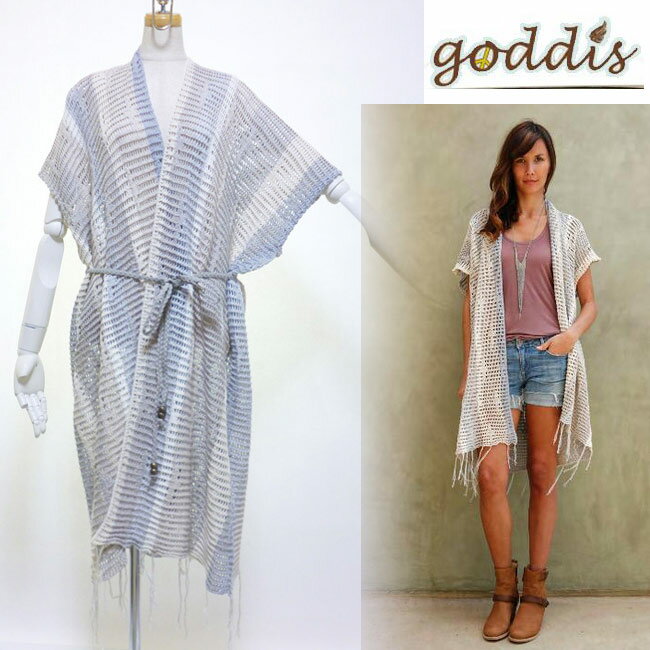 カリフォルニアのカジュアルビーチスタイルとNYのセクシーなドレスアップスタイル、その相反する2つからからインスピレーションを受けたという、ニットブランド パリス・ヒルトン、ケイト・ハドソン、ハイジ・クラム、ジェニファー・アニストンなど、LAセレブが愛用 kitsonキットソン、Planet blueプラネットブルー等の人気セレクトショップで取り扱われています。 日本ではまだ取扱いが少なく、入手困難なブランド マイリー・サイラスなどのセレブが愛用中! マルチカラーでも優しいカラーで合わせやすいクールなベスト♪すそにフリンジがついていますスエードのベルトがついています goddis willa vest boardwalk カラーホワイト/ブルー/ベージュ 素材 50% acrylic 50%cottonサイズ サイズS/M(7号から11号程度):着丈後ろ約104センチ(フリンジ約15センチ)、裄丈約43センチ、身幅約71センチ 生産ブラジル納期 即納パンツ:sauce、シャツ:LNA 取り扱いブランド