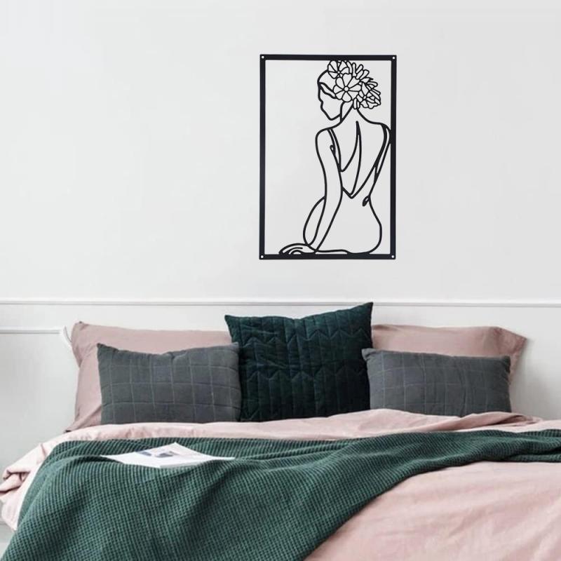 ウォールデコレーション 女性用 ヨーロピアン 抽象画 女性のシルエット ラインアート アイアン製 メタル 壁掛け リビング 玄関 インテリア アートパネル おしゃれ モダン ブラック シャンパンゴールド 厚みのある