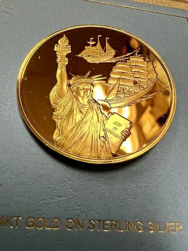 1986年 自由の女神像 24K金メッキ スターリングシルバー 再奉納目撃者メダル