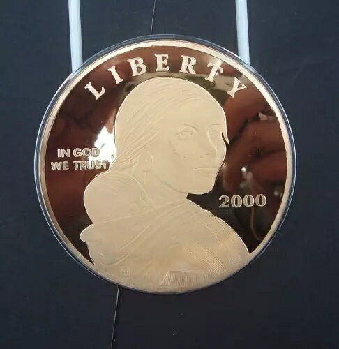アメリカ合衆国。ワシントン造幣局 2000年 サカガウィア 24金銀貨 (.999) 4オンス ラウンド。鑑定書付き