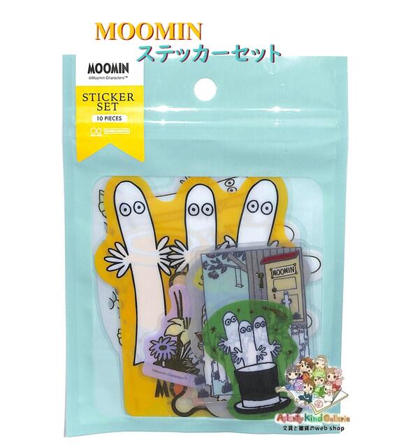 【 MOOMIN グッズ 】 ムーミン ステッカーセット S8813434 ニョロニョロ ミントグリーン 10柄入り 保管に便利 ケース入り Big 大きい シール Seal 大 中 小 3サイズ入り 【3cmメール便OK】