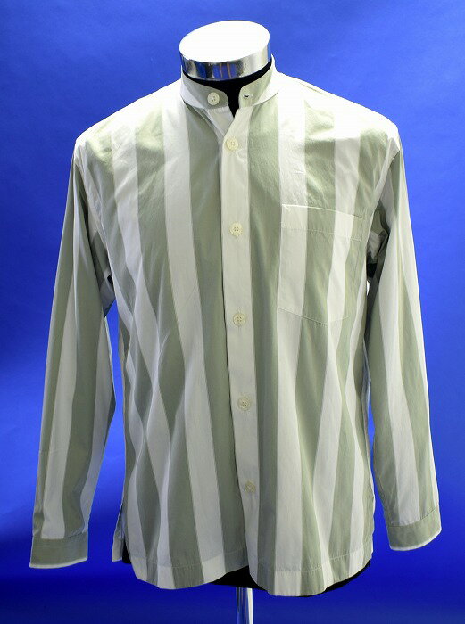 【中古】 Bagutta(バグッタ)STRIPE BAND COLLER OVER SHIRT ストライプ バンドカラー オーバーシャツ UENO_GL11884 L/S 長袖 ボーダー MILANO ミラノ ドレス おしゃれ カジュアル トラッド GREY×WHITE XS イタリア クラシコ リゾート 2TONE 2トーン