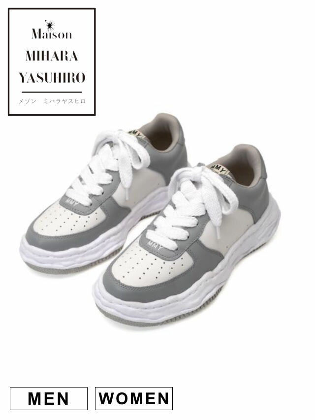 【Maison MIHARA YASUHIRO / メゾン ミハラヤスヒロ】 オリジナルソール スニーカー - "WAYNE" OG Sole LEATHER Low-top Sneaker - GREY×WHITE
