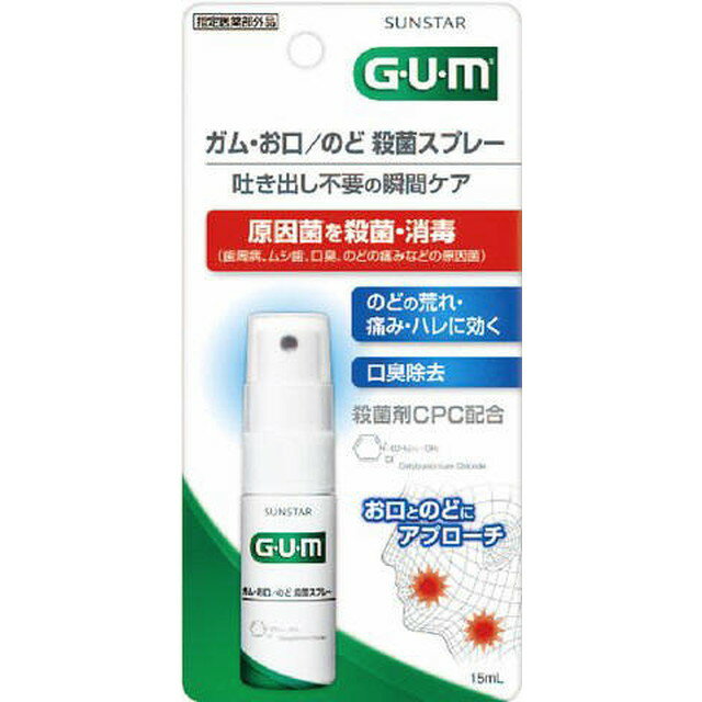 サンスター ガム GUM お口 のど殺菌スプレー 15ml 医薬部外品 さわやかなハーブミントの香味(口臭対策 マウスウォッシュ)