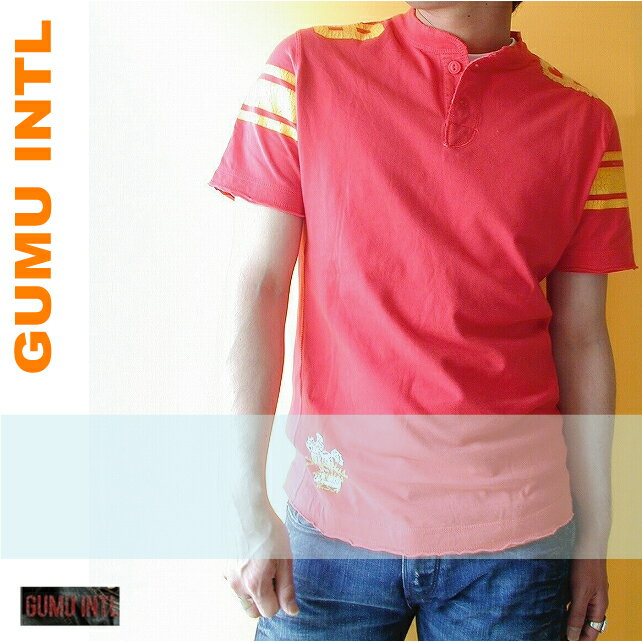 【SALE!!】【送料無料当店負担】GUMU INTL T-shirts★グムインテル バックプリント バックプリント ラガー へンリーネック Tシャツ