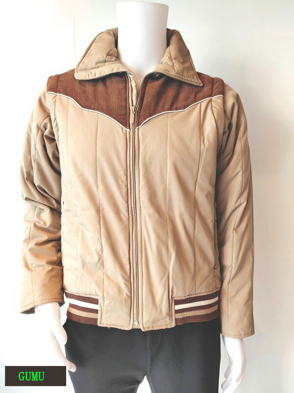 gumu 2WAYベストXブルゾン 袖取り外し可能 メンズ アウター (ベージュ)