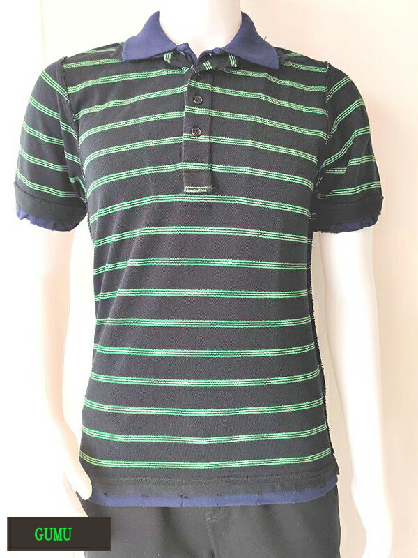 ギフト対応gumu レイヤード襟 ボーダー 半袖ポロシャツ 半袖Tシャツ カットソー メンズ トップス 綿100% コットン100% ブランド gumu 素材 コットン100% サイズ Lサイズ 寸法 肩幅41 袖27 裄丈45 着丈70 バスト50