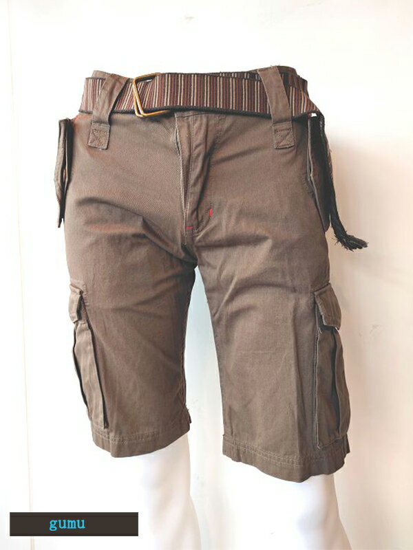 GUMU ベルト付きハーフパンツ ショートパンツ メンズ