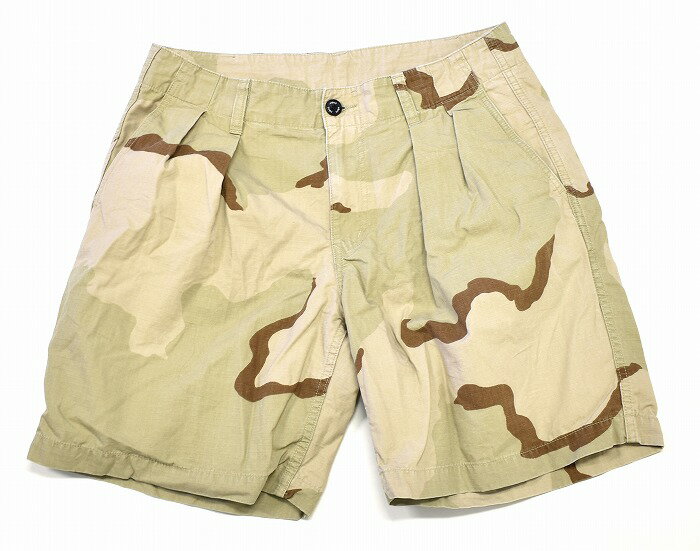 【中古】HABANOS (ハバノス)CAMO SHORT PANTS カモ ショート パンツ Shorts ワイド ショーツ プリーツ RIPSTOP タック ハーフパンツ ショートパンツ 短パン 迷彩 M HBNS COTTON NYLON おしゃれ ストリート アウトドア MADE IN JAPAN デザートカモ