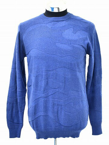 【新品】 HABANOS (ハバノス) CAMO CREW KNIT カモクルーニット M INDIGO BLUE A17-KT01 CREW NECK クルーネック セーター カモフラージュ 迷彩 コットンニット HBNS ジャガード ストリート アメカジ