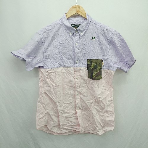 ◇ ⊂ HBNS ハバノス 半袖 ツートンカラーシャツ サイズXL パープル系 メンズ E 【中古】