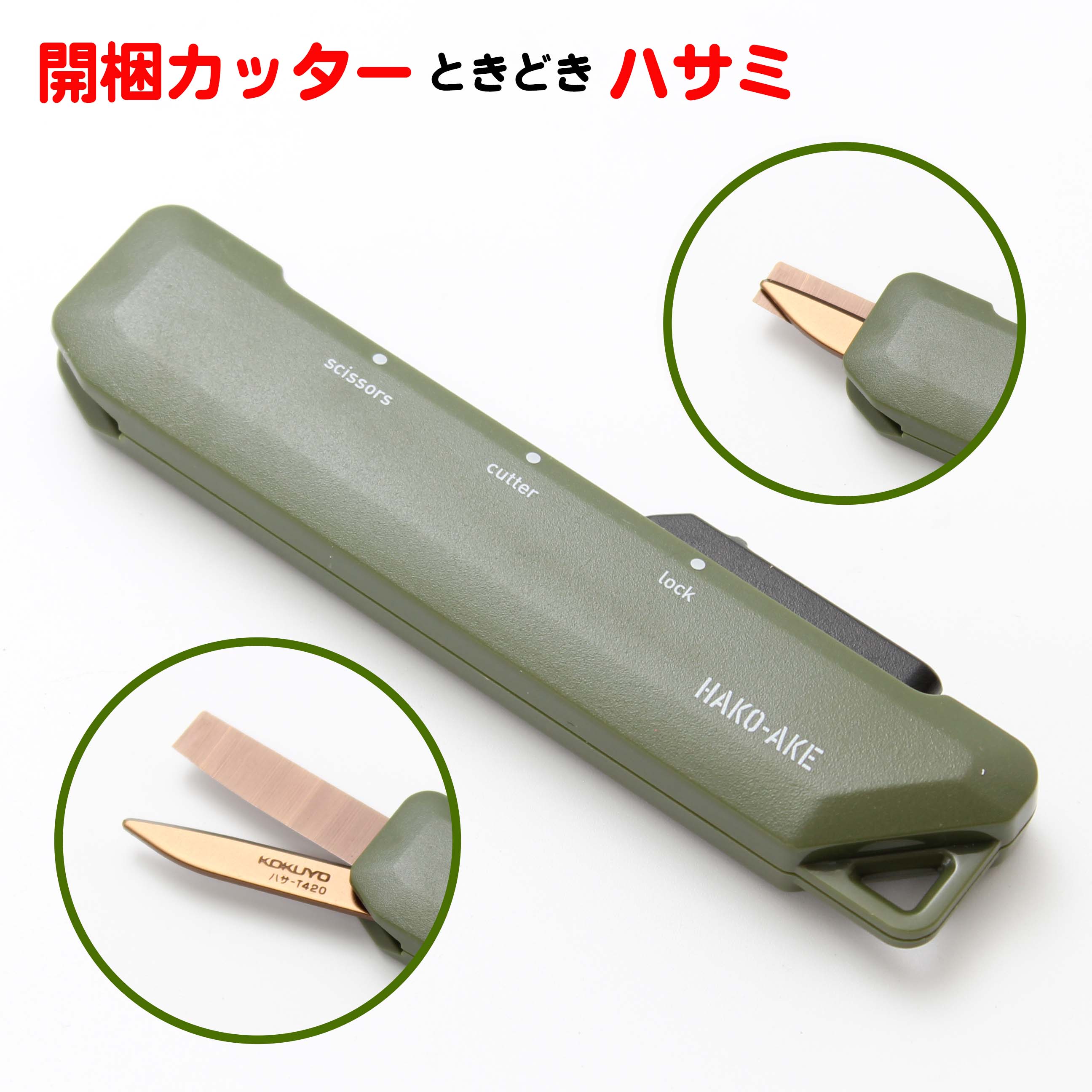 コクヨ ハサミ 2way 携帯ハサミ 開梱カッター ハコアケ チタン刃 カーキ HAKO-AKE ハサ-T420DG KOKUYO 業者様歓迎