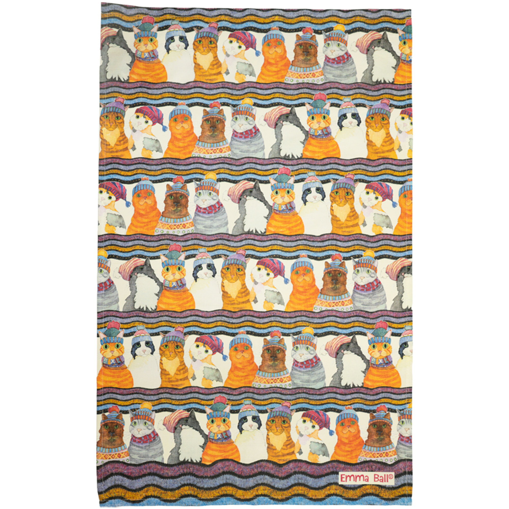 Emma Ball ティータオル コットン タペストリー くま ランチョンマット クロス タオル ディッシュタオル 食器拭き 布 布巾 ふきん 大判 かわいい おしゃれ 雑貨 英国 インテリア Cats in Hats EBTT83