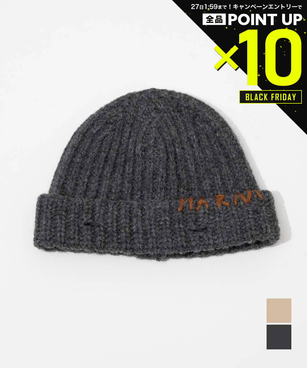 【店内全品エントリーでP10倍!&MAX2万円OFFクーポン配布】マルニ MARNI CLZC0145Q0 UFH938 帽子 HATS メンズ レディース ニット帽 ウール リブビーニー カジュアル ハンドメイドステッチロゴ アウトドア ストリート 通学 ギフト プレゼント グラニット モカシン