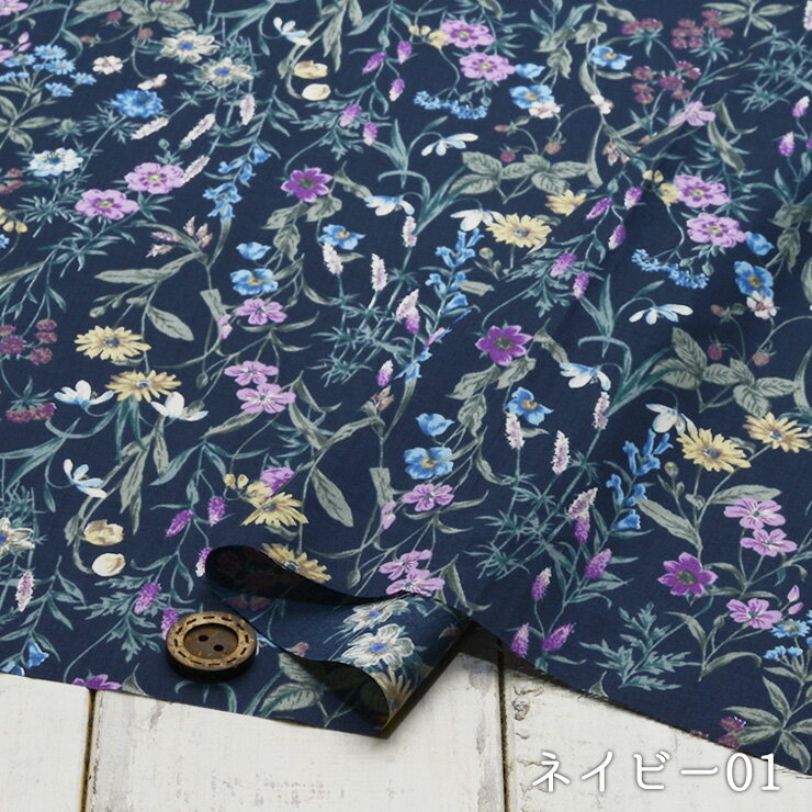 【アウトレット商品 ナチュラル花柄/ネイビー01-45cmカット済】綿100%ローン生地 ソフトでなめらかな肌触り 透け感やや有 HOKKOH 布帛(ce-2093-1)