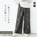 [ 柄 ワイドパンツ レディース 秋 綿 ] オーガニックコットン100% リバティプリント ワイドパンツ / 日本製 40代 50代 60代 柄パンツ リバティ LIBERTY HOKKOH ウエストゴム 体型カバー コットン 綿 イージーパンツ