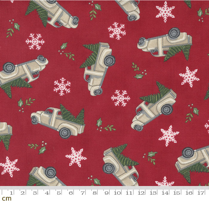 【Moda モダ】Holly Berry Tree Farm-56032-12(2E-08) レッド ホワイト 車柄 雪の結晶柄 クリスマス コットン100% シーチング【10cm単位販売】