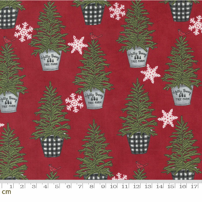 【Moda モダ】Holly Berry Tree Farm-56033-12(2E-08) グリーン レッド 植物柄 ツリー柄 モミの木 クリスマス コットン100% シーチング【10cm単位販売】
