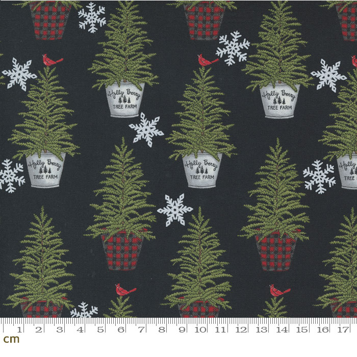 【Moda モダ】Holly Berry Tree Farm-56033-14(2E-08) グリーン ブラック 植物柄 ツリー柄 モミの木 クリスマス コットン100% シーチング【10cm単位販売】