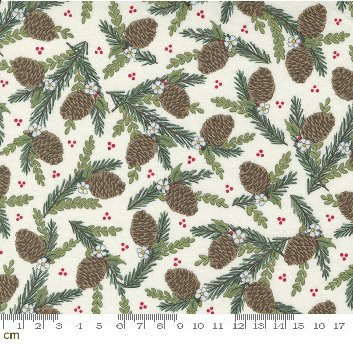 【Moda モダ】Holly Berry Tree Farm-56034-11(2E-08) グリーン ホワイト 植物柄 松ぼっくり柄 クリスマス コットン100% シーチング【10cm単位販売】