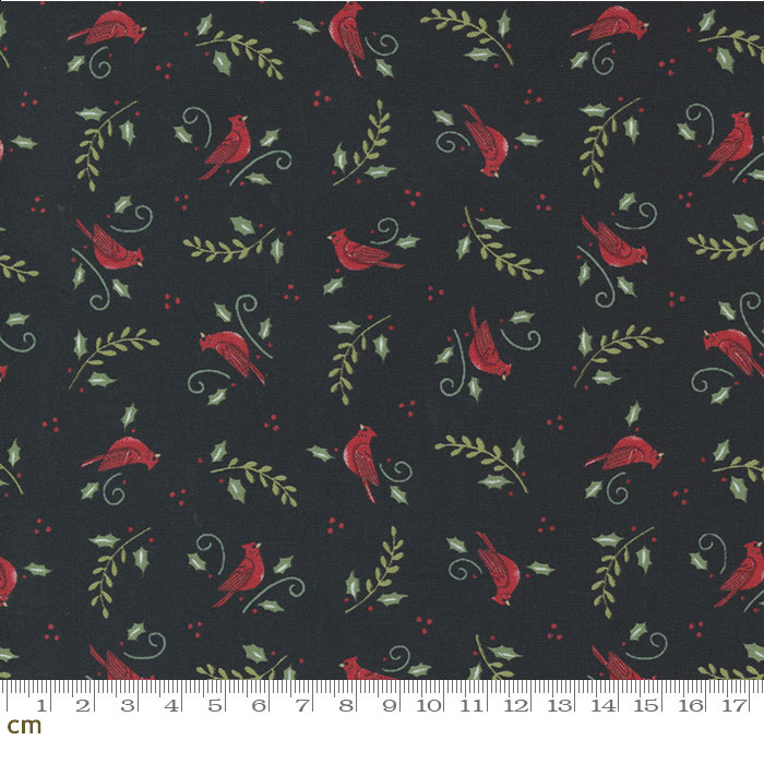 【Moda モダ】Holly Berry Tree Farm-56035-14(2E-08) グリーン レッド ブラック系 鳥柄 リーフ柄 クリスマス コットン100% シーチング【10cm単位販売】