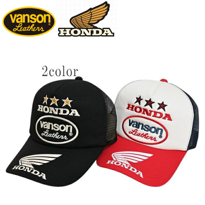 VANSON × HONDA 刺繍 ツイルメッシュキャップ ( HRV-2417 ) 定形外郵便 対応 HONDA ホンダ コラボ メッシュ キャップ 帽子 バイカー ロゴ 刺繍 サイズ調節可能 2柄展開