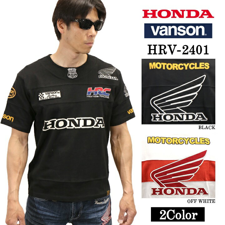 BLACKFRIDAY期間中使えるクーポン発行中 VANSON HONDA 半袖Tシャツ HRV-2405 バンソン ホンダ 刺繍 ワッペン【SS122-20】
