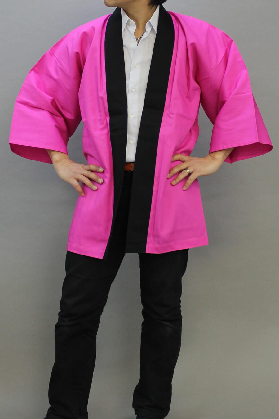 無地カラー法被 【ホットピンク】模擬店・イベント・スタッフ・大売り出し・フェスに大人気の無地半纏 大人用フリーサイズ 6097