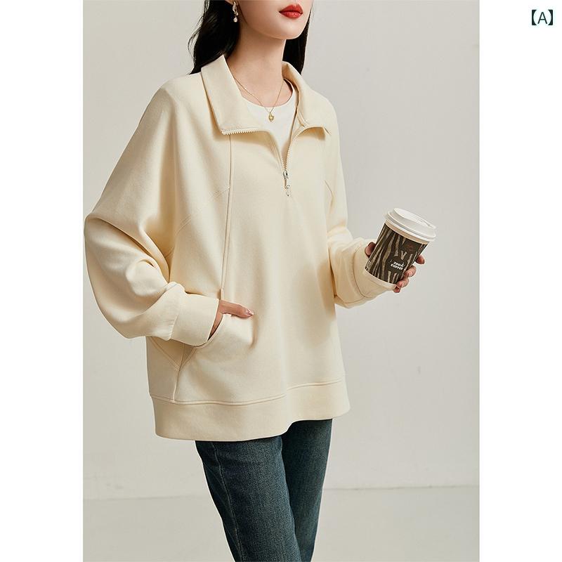 ジッパー ジャケット カジュアル シンプルで スリム スポーツ アバンギャルドな ニット スタンドカラーの ゆったり 快適 冬と 春の 女性用 ハーフ ジップセーター