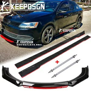 VW ジェッタゴルフ GTi ビートルレッドフロントバンパーリップスプリッタースポイラー + サイドスカート For VW Jetta Golf GTi Beetle Red Front Bumper Lip Splitter Spoiler +Side Skirts
