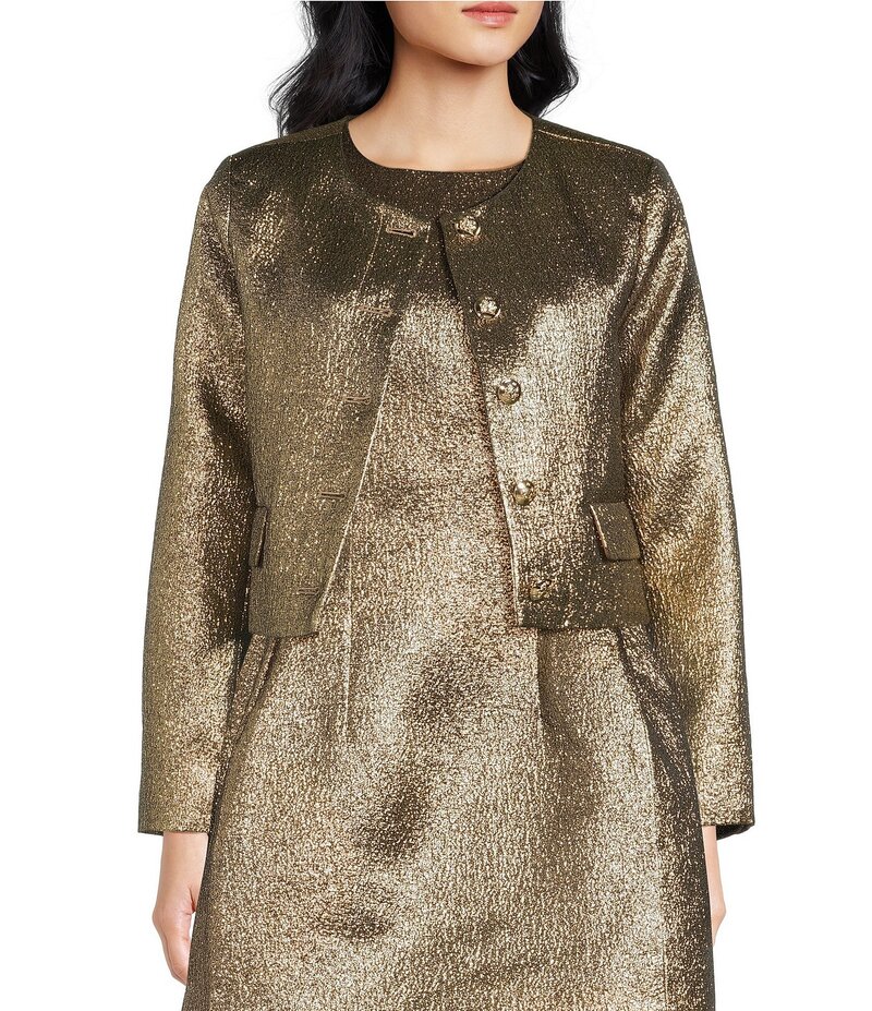 エーラブズエー レディース アウター コート クルーネック トール クロップド ブレザー A Loves A Coated Metallicrew Neck Long Sleeve Button Front Cropped Coordinating Blazer Gold ゴールド