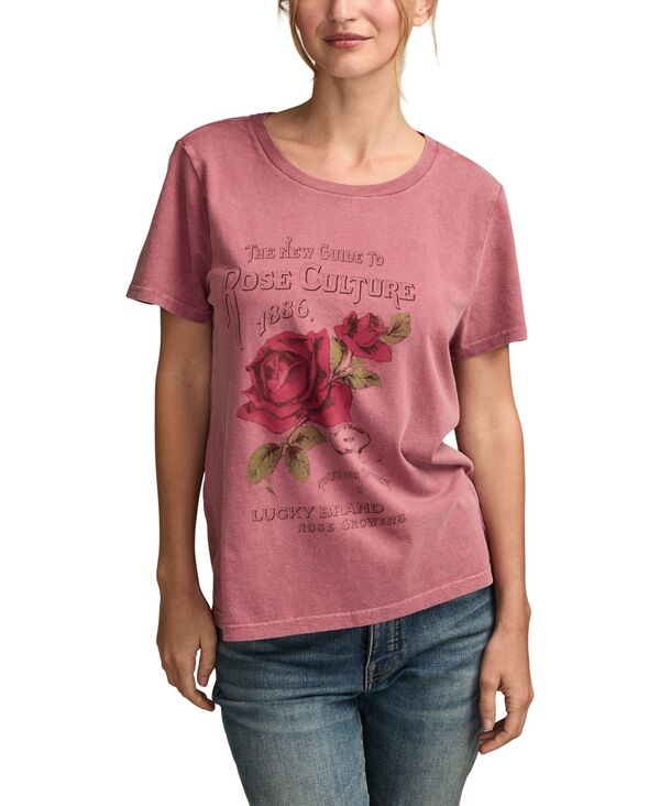 ラッキーブランド レディース トップス シャツ クルーネック Lucky Brand Women's Rose Culture Classicrewneck T-Shirt Rose Wine ワイン