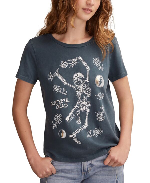 ラッキーブランド レディース トップス シャツ クルーネック Lucky Brand Women's Grateful Deadancing Skulls Classicrewneck Top Midnight Navy ネイビー