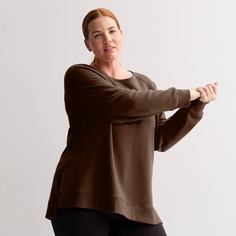 Tek Gear レディース トップス Tシャツ プラスサイズ スウェット フリース Plusize Tek Gear Ultrasoft Fleece High Slitunicrew Sweatshirt Birk Brown ブラウン