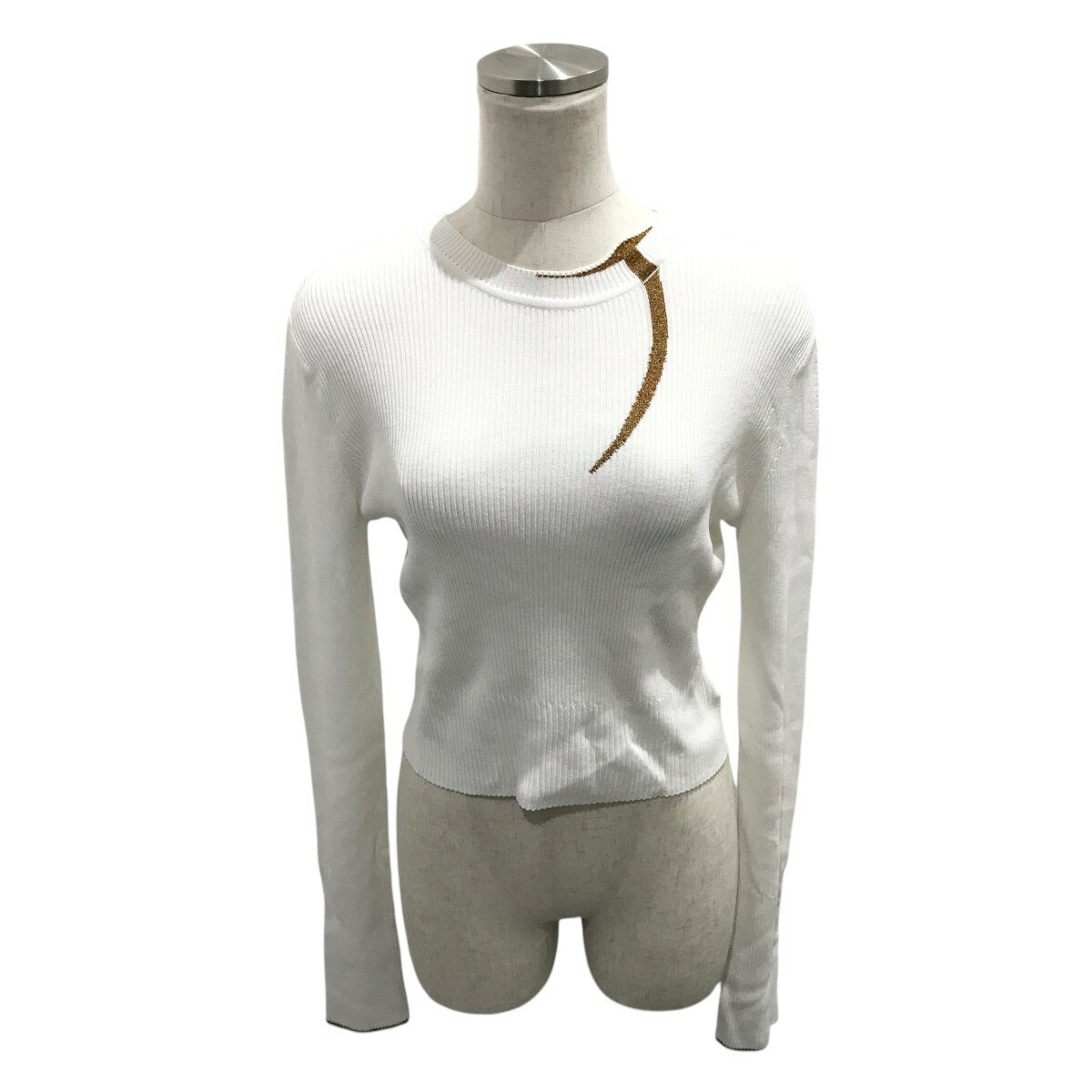 【中古】mame kurogouchi【Kintsugi Crew Neck Knitted Top】 リブニット MM24FW-KN516 ホワイト サイズ:2【価格見直し】
