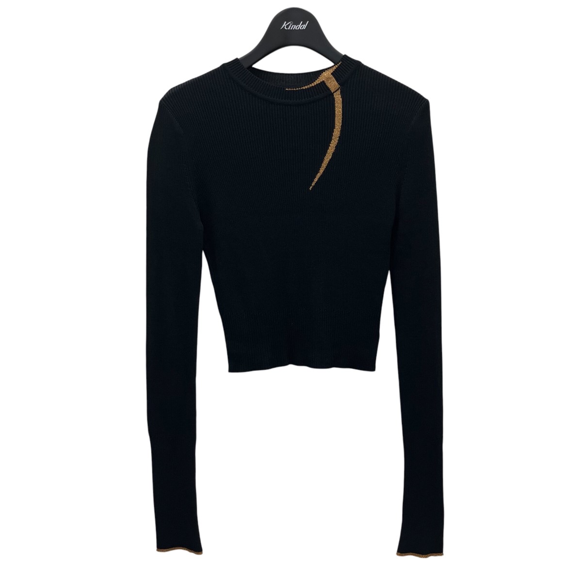 【中古】mame kurogouchi Kintsugi Crew Neck Knitted Top リブニット MM24FW-KN079 ブラック サイズ:1 【050425】(マメクロゴウチ)