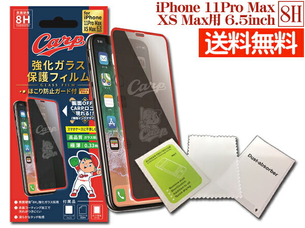 【エントリーでP5倍★11/20 20時〜11/26まで】カープ公認デザイン 強化ガラス 保護フィルム2 iPhone 11Pro Max XS Max 6.5インチ 8H 極薄 高品質 コーティング加工 メール便 送料無料