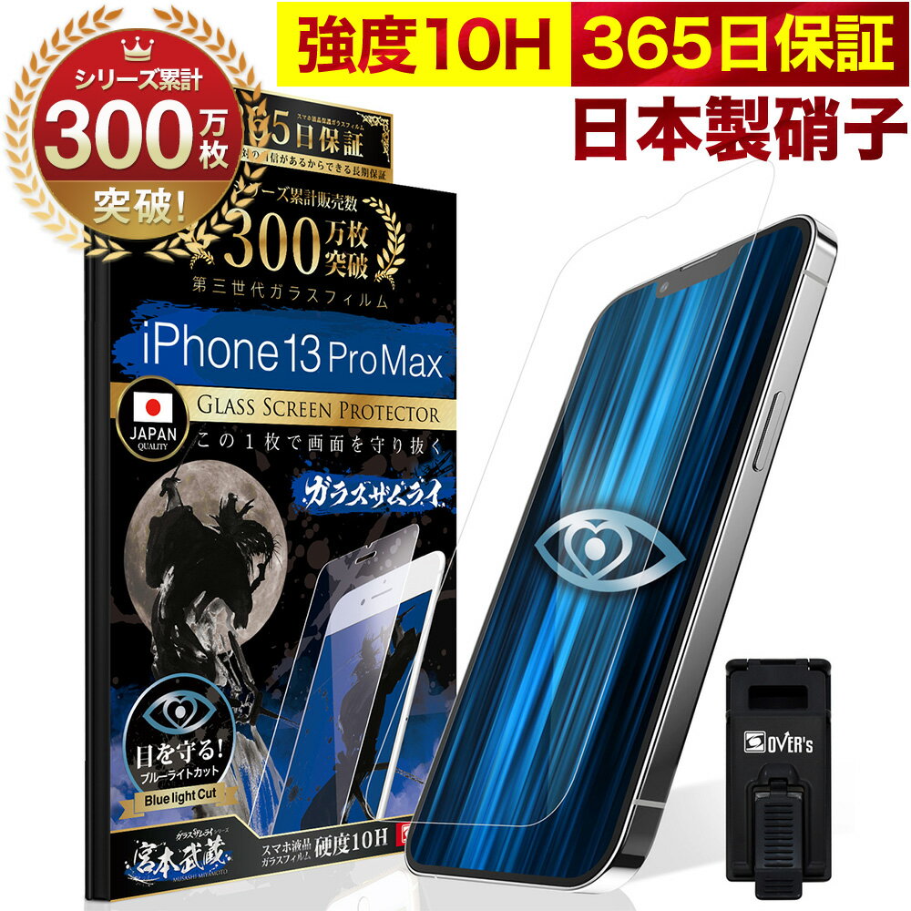 【10%OFFクーポン配布中】iPhone13 Pro Max ガラスフィルム 保護フィルム ブルーライト32%カット 目に優しい ブルーライトカット 10H ガラスザムライ iPhone13ProMaxフィルム 液晶保護フィルム OVER`s オーバーズ iPhone TP01