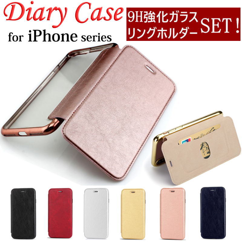【強化ガラス+リングホルダー付き】 手帳型ケース iphone 17 Air 17Pro Max 16e 16 16Pro Max 16Plus 15 ケース 15Plus 15Pro Max 14Plus 14 14Pro Max SE 第3世代 iphone13 13promax 13mini 12 12Pro 12mini 第2世代 手帳型カバー 背面クリア 透明 TPU カード収納 11Pro