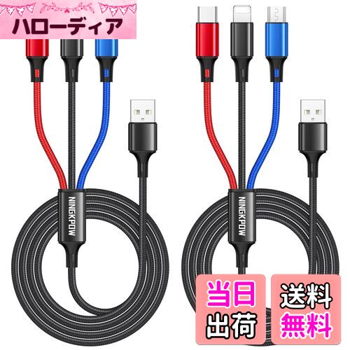 NINGKPOW 3in1 充電ケーブル【1.2M 2本セット】USB ケーブ3A 急速充電 3イン1 充電コード USB Type C ケーブル Micro USB ケーブル Phone 充電ケーブル 3台同時給電可能 Phone Android タイプC Phone 13 12 11 Galaxy S22 S20 Xiaomi Kindle Sony 等多機種対応-多色