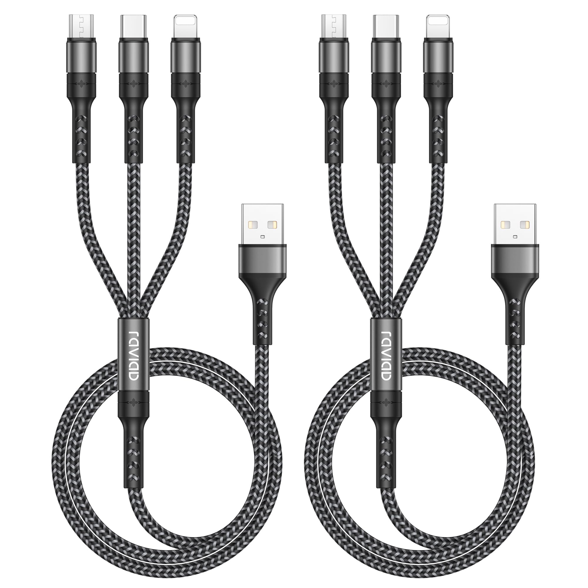 RAVIAD 3in1 充電ケーブル【1.2M 2本セット】USB ケーブル 3A 急速充電 3イン1 充電コード USB Type C ケーブル Micro USB ケーブル Phone 充電ケーブル 3台同時給電可能 Phone Android タイプC Phone 14 13 12 Galaxy S24 S23 S22 21 S20 Kindle 等多機種対応 - グレー