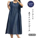 テンセル デニム ジャンパースカート柔らかデニム ソフトデニム 薄手 レディース デニム リヨセル 上品な光沢感 落ち感 綺麗なドレープとAライン ミモレ ロング ゆったり Aラインシルエット フレアー 被るだけ インデ