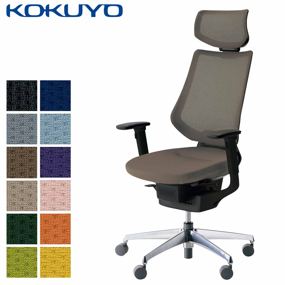 コクヨ デスクチェア オフィスチェア 椅子 ing イング CR-GA3415E6 メッシュタイプ ヘッドレスト付きタイプ 可動肘 ブラックシェル アルミポリッシュ脚 -v フローリング用キャスター
