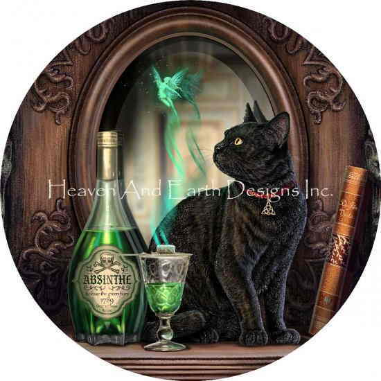 Lisa Parker クロスステッチ刺しゅうチャート HAED 図案 【Ornament Absinthe】 Heaven And Earth Designs 輸入 上級者 猫 アブサン 薬草酒 妖精 フェアリー 黒猫 ブラックキャット ねこ ネコ